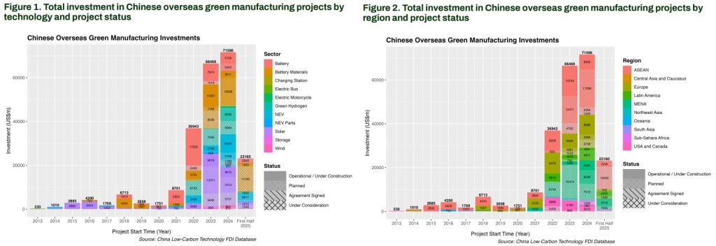Source: Xue, X., & Larsen, M. (2025, September 9). China’s Green Leap Outward: The rapid scale-up of overseas Chinese clean-tech manufacturing investments [Policy brief]. Net Zero Industrial Policy Lab. https://www.netzeropolicylab.com/china-green-leap